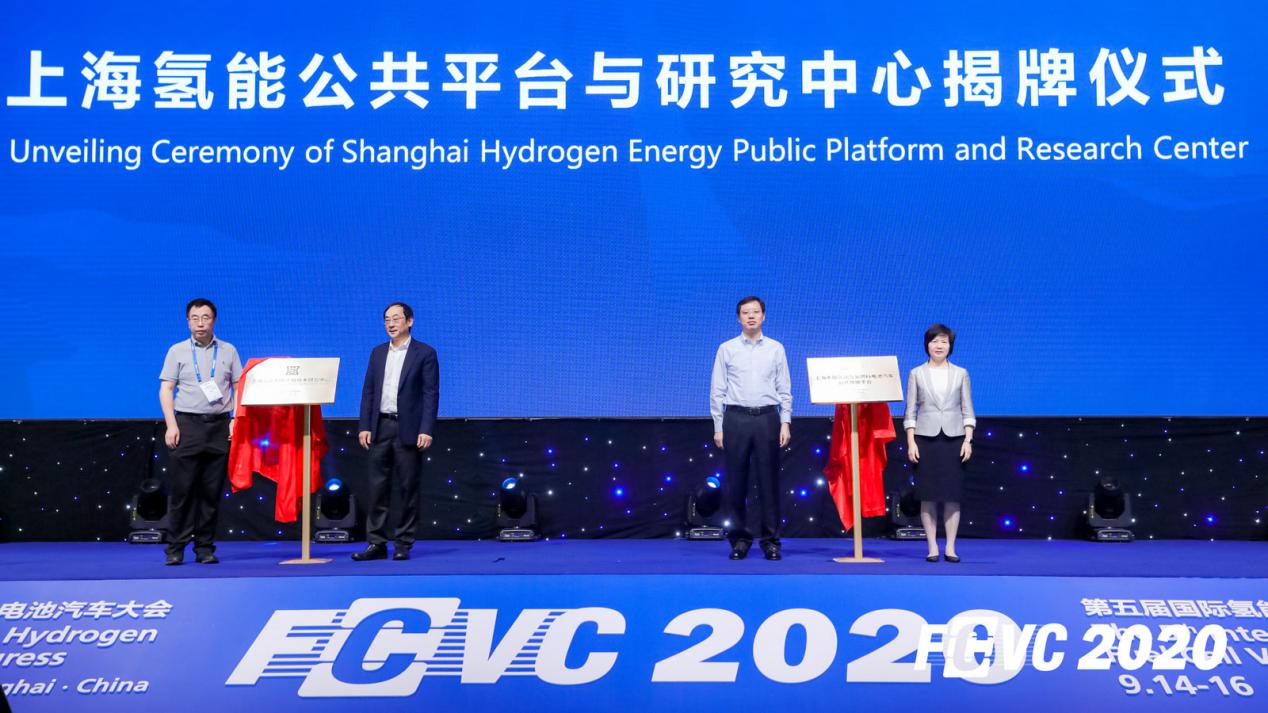 中国汽车工程学会常务副理事长兼秘书长张进华,上海市科委一级调研员刘文波为“上海氢能利用工程技术研究中心”揭牌;上海市经信委副主任张建明、嘉定区陆祖芳部长为“上海市加氢站与氢燃料电池汽车公共数据平台”揭牌。