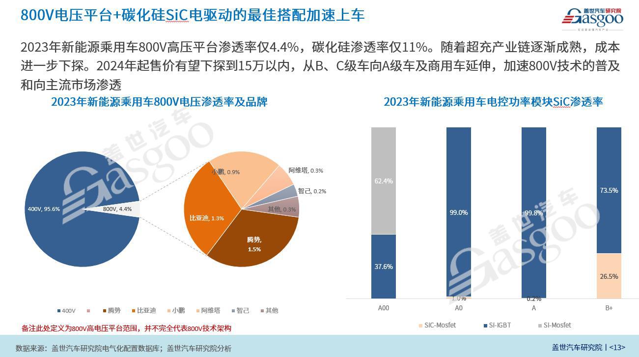据乐车生活集研究院统计,2023年,国内乘用车800V高压平台的渗透率为4.4%,随着超充产业链的成熟,今年800V高压快充的起售价有望下探至15万级车型。
