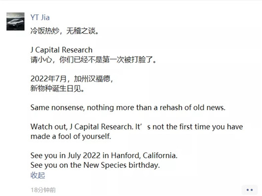 随即,作为当事人,贾跃亭位于朋友圈回击道:“此份做空报告为,完全是冷饭热炒,无稽之谈,该机构已经不是第一次被打脸了。”针锋相对之下,双方到了剑拔弩张的地步。