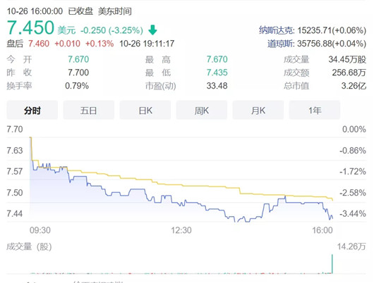 最为直接的反馈便是其股价,截至美国东部时间10月26日收盘,仅报收于每股7.450美元,跌幅3.25%,总市值也缩水至3.26亿美元。上市三个月以来,缩水超过40%。